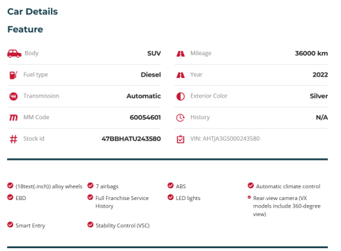 Meet the 2022 Toyota Fortuner 2.8GD-6, a robust SUV designed for both urban comfort and off-road adventures. This silver powerhouse is equipped with a 2.8-liter turbo diesel engine, delivering a solid 150 kW of power and 500 Nm of torque. Its i4 engine layout ensures efficient performance, making it a reliable companion for long journeys. With an average fuel consumption of 7.6 l/100km and an impressive range of 1,053 km, this Fortuner keeps you on the road longer with fewer stops at the pump. Inside, the Fortuner offers spacious comfort for all passengers, making it an excellent choice for families or group travelers. Although it comes without a warranty, its reputation for durability and the trusted Toyota build quality provide peace of mind. Safety and stability are priorities with its front-engine position, and it manages a top speed of 180 km/h, perfectly balancing power with control. With CO2 emissions of 201 g/km, it remains eco-conscious while delivering a thrilling driving experience. This Fortuner is perfect for those who seek a reliable, versatile, and capable vehicle that meets the demands of both city life and the great outdoors.